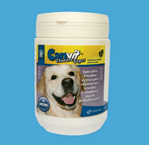 КАНВИТ ХОНДРО® СУПЕР предназначен для восстановления сустава при воспалении и для снижения боли. В результате возобновления этих тканей происходит также устранение болей в суставах. Основными действующимими веществами являются хондроитина сульфат, глюкозамина сульфат и метилсульфонилметан "МСМ". Хондроитина и глюкозамина сульфаты являются естественными компонентами суставного хряща, легко впитываются и встраиваются в повреждённый хрящ. Они повышают гидратацию хряща и способствуют, таким образом, повышению его эластичности и усилению механической устойчивости. Применение препарата "КАНВИТ ХОНДРО® СУПЕР" рекомендуется в особенности для собак, имеющих проблемы с двигательным аппаратом или с системой связок, при дисплазии тазобедренного сустава, остеоартрозе, а также для восстановления суставов и сухожилий после травм. В целях профилактики рекомендуется скармливать молодым собакам крупных пород, рабочим и служебным собакам со значительной нагрузкой двигательного аппарата. У более старых собак "КАНВИТ ХОНДРО® СУПЕР" помогает поддерживать хорошую подвижность до преклонного возраста, препятствует повреждению хрящей, суставов и связок, тем самым обеспечивая безболезненное функционирование суставов. Однако в целях профилактики достаточно использовать препараты "КАНВИТ ХОНДРО®" или "КАНВИТ ХОНДРО® МАКСИ". Эти продукты содержат дополнительные функциональные компоненты (витамины, микроэлементы, гидролизат желатина), которые также положительно влияют на состояние суставного хряща. Препарат "КАНВИТ ХОНДРО® СУПЕР" следует применять как минимум на протяжении 8-10 недель, причём курс целесообразно повторить через 3 месяца. Возможно применять длительное время.